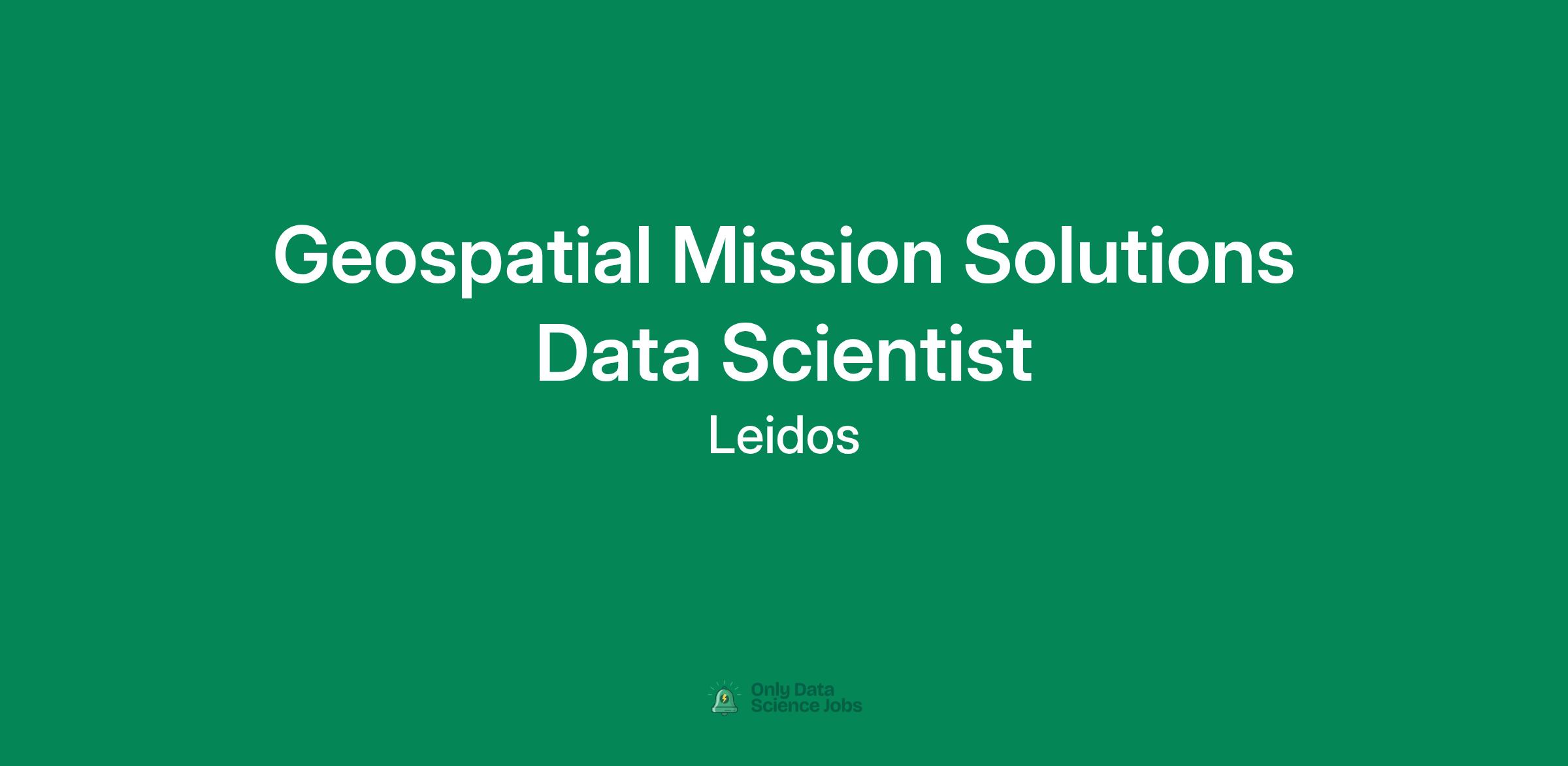 As a Geospatial Mission Solutions Data Scientist, you will help shape the next generation of geospatial capabilities by applying data science to real-world intelligence challenges. This position straddles the worlds of direct customer mission support and Leidos-driven innovation, blending hands-on problem solving with forward-looking solution development.