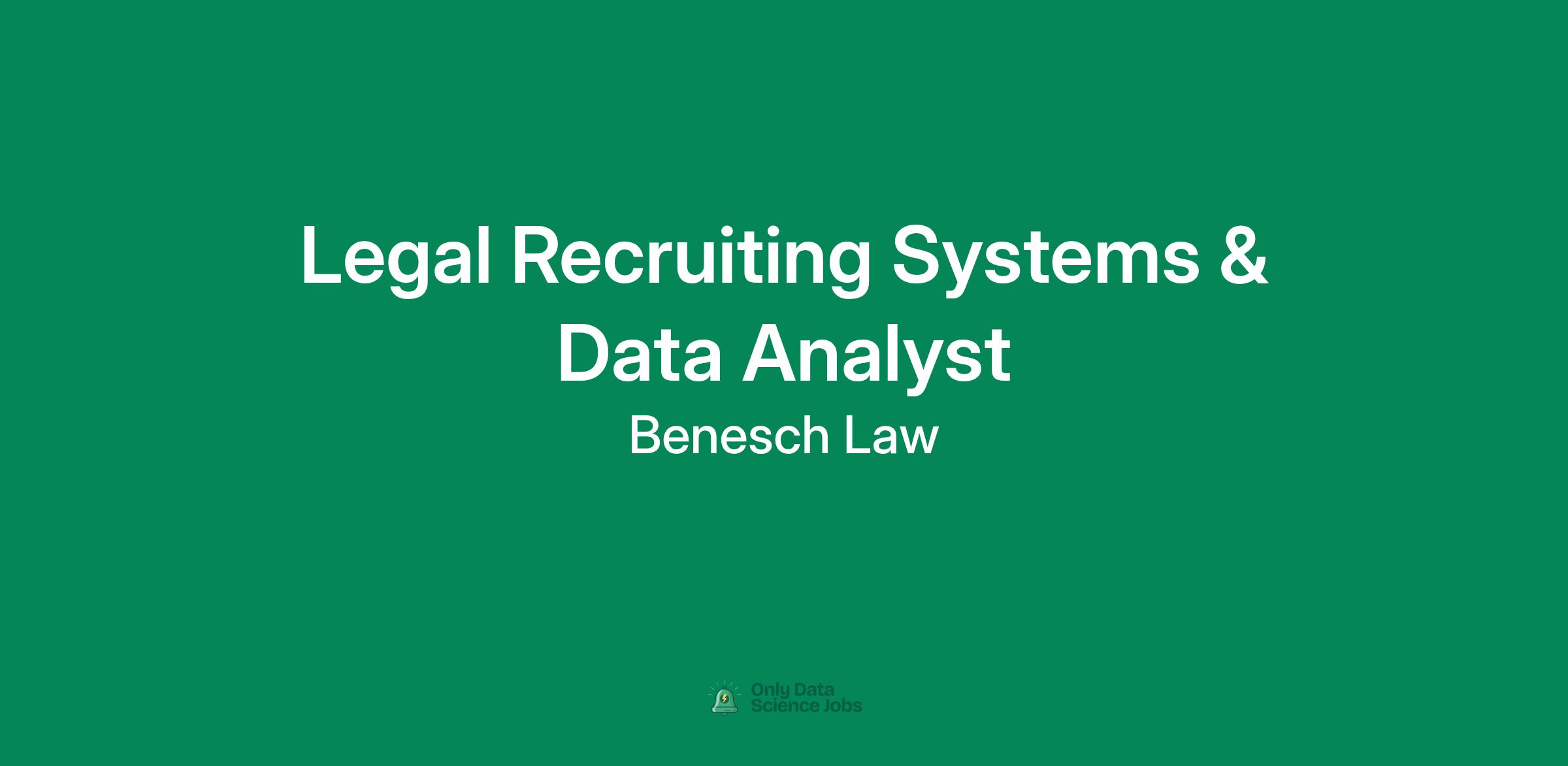 The Legal Recruiting Systems & Data Analyst is responsible for optimizing legal recruiting technology platforms and leveraging data insights to support strategic hiring decisions. This role ensures the smooth operation of systems used for lateral attorney recruitment, while capturing, analyzing, and transforming data into actionable intelligence for firm management, practice group leaders (PGLs), and the legal recruiting team.